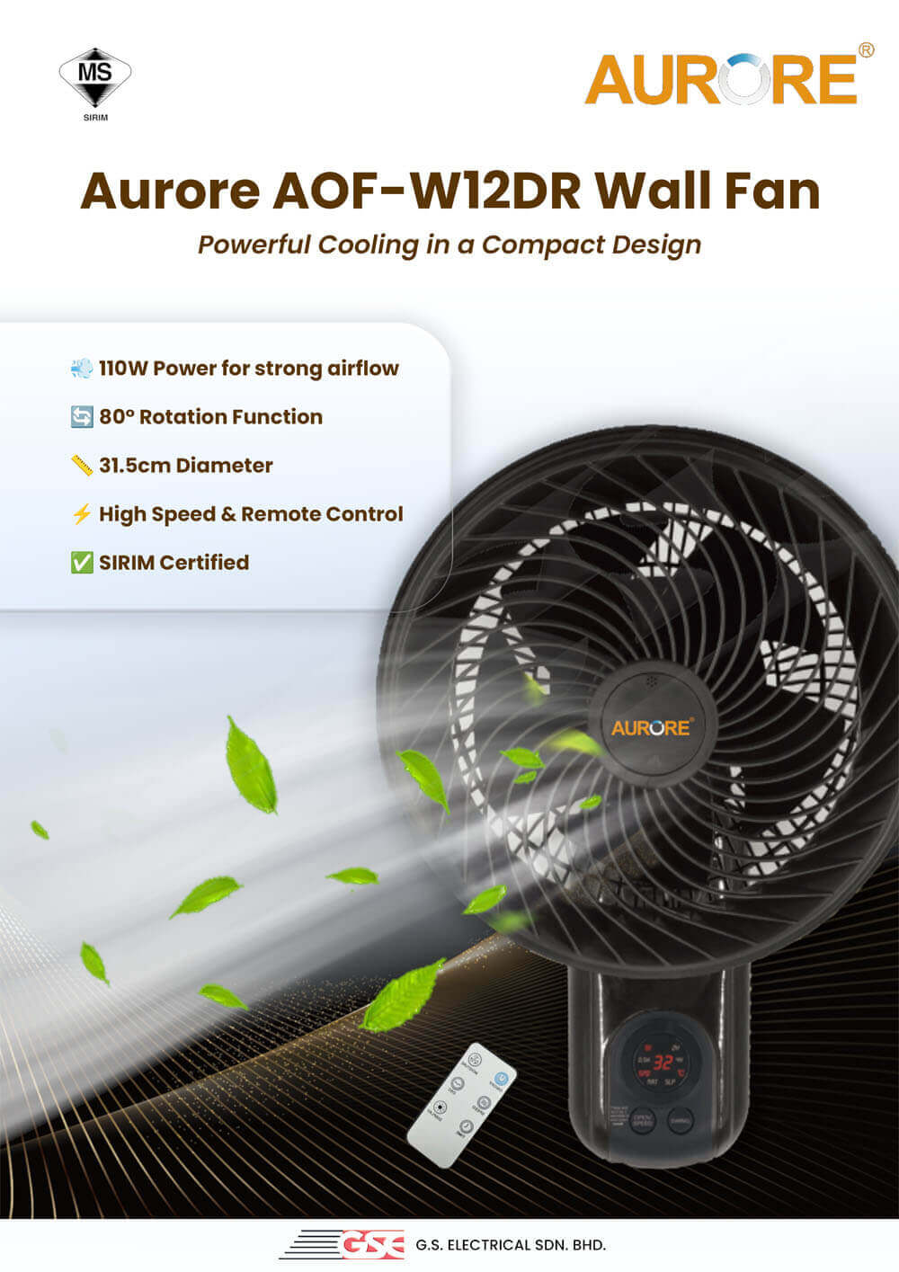 AURORE Wall Fan (AOF-W12DR) / AOF-W12DR Wall Fan